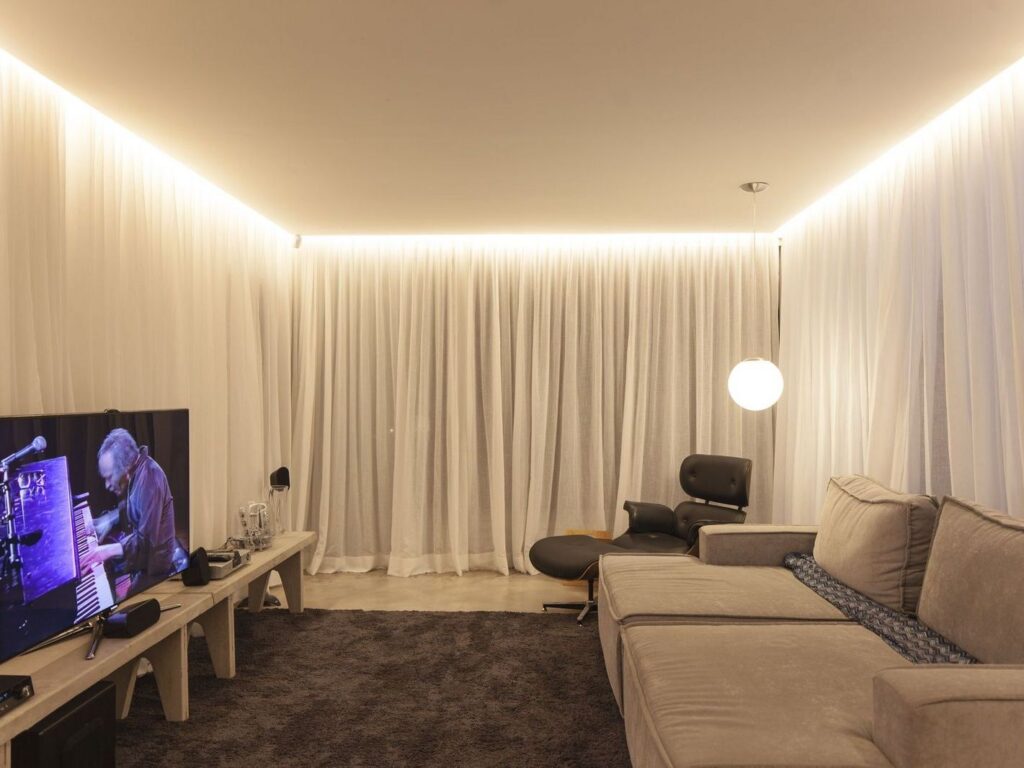 • Визуальное расширение пространства: световой контур по периметру «поднимает» потолок, делая комнату более просторной и воздушной.