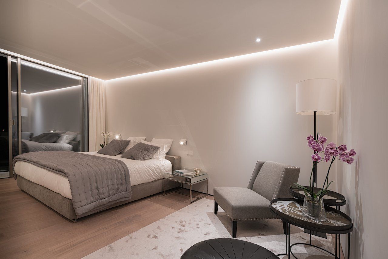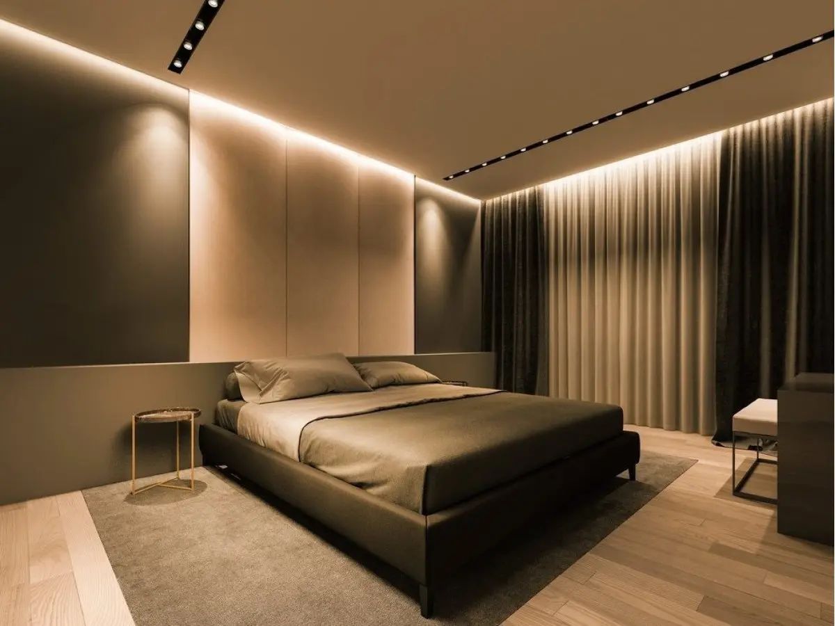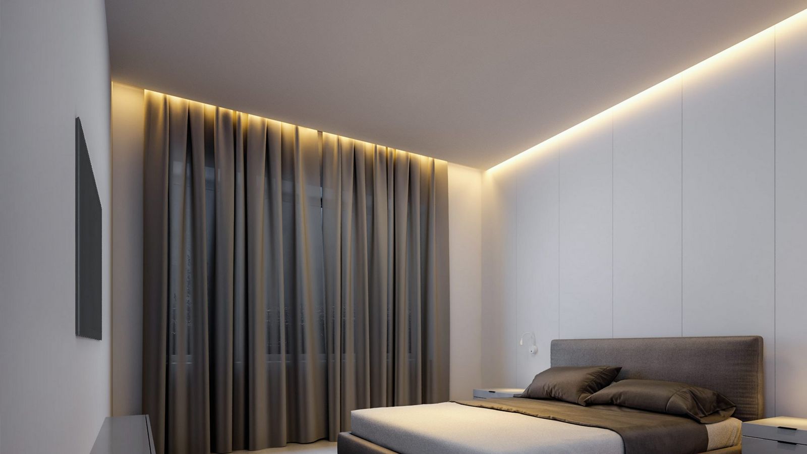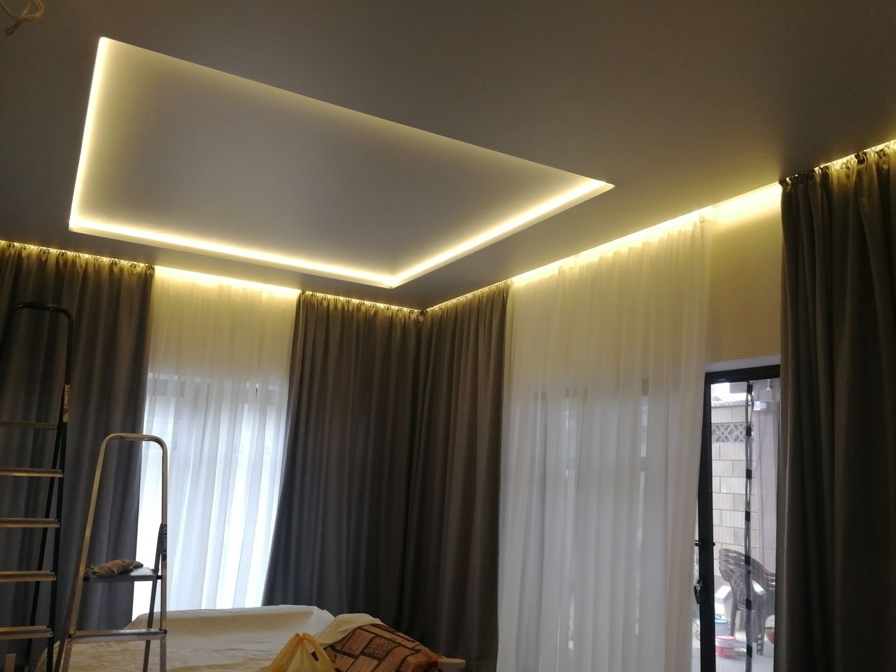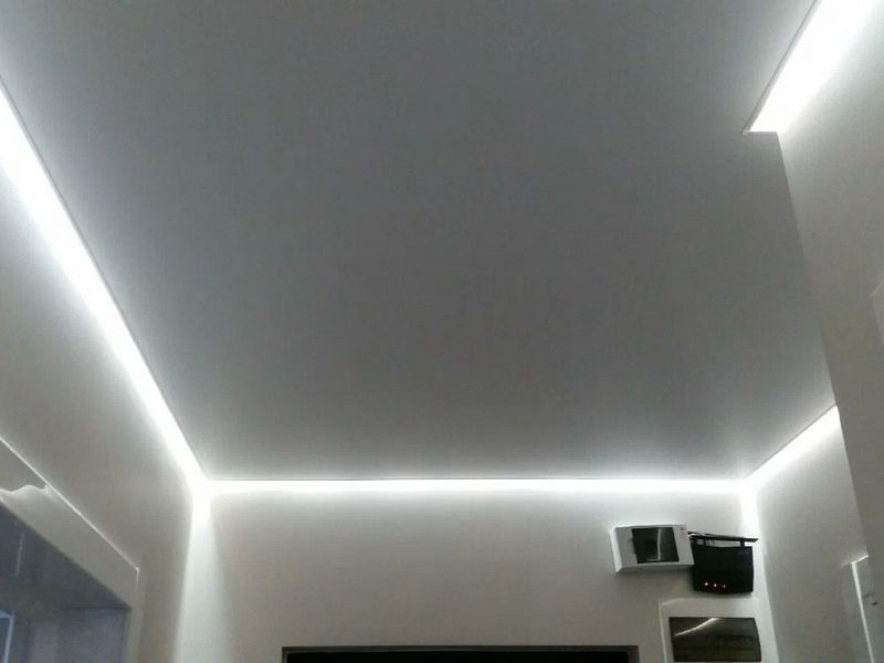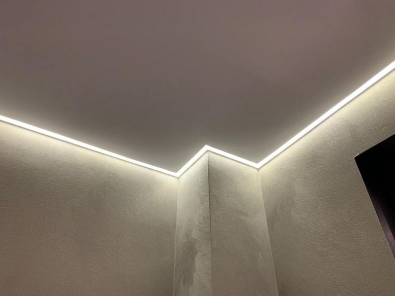 • Визуальное расширение пространства: световой контур по периметру «поднимает» потолок, делая комнату более просторной и воздушной.